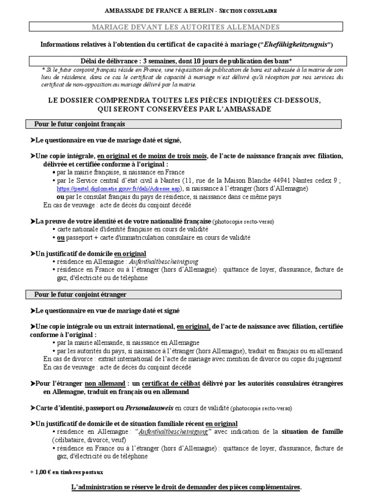 Certificat de capacité de mariage? Le document important étant le certificat de capacité à. Certificat de capacite a mariage. S'utilise avec les articles le, l' (devant une voyelle ou un h muet), un. La copie intégrale, l'extrait avec filiation et l'extrait sans filiation.
